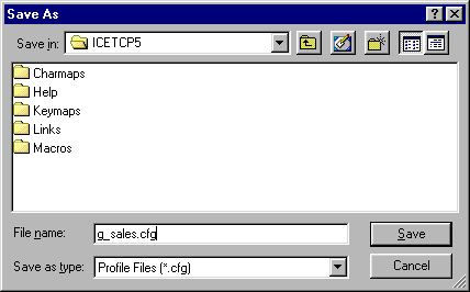 You want to save your new profile in the ICETCP5 directory. This is also where the TelnetPro executable