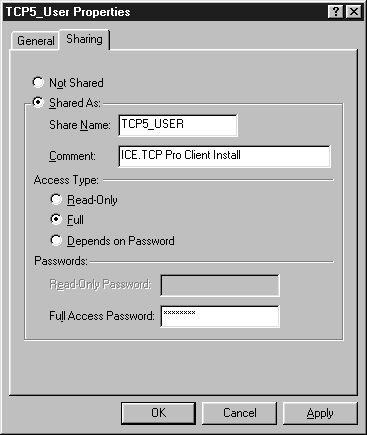 network client install procedure. For the Access Type setting, select Full. Assign a password for the shared folder. Network users will be required
