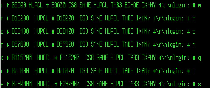 modem. In our example above, it is the letter 'm'. Looking in our gettydefs file,